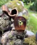 I skæftet er der indbygget en original 7 g fc compact spinner i Epoxy. Træet rundt om er lavet af elme rod og foran aluminium ringen er skæftet afsluttet med Ibenholt.