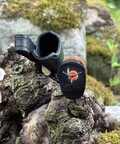 I skæftet er der indbygget en original 7 g fc compact spinner i Epoxy. Træet rundt om er lave af mose eg (heraf det mørke farve) og foran aluminium ringen er skæftet afsluttet med Ibenholt.